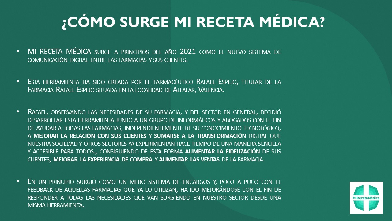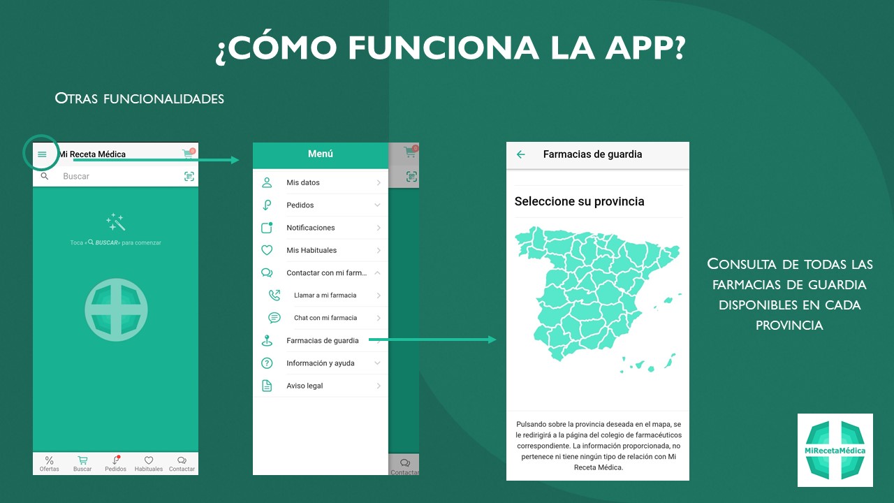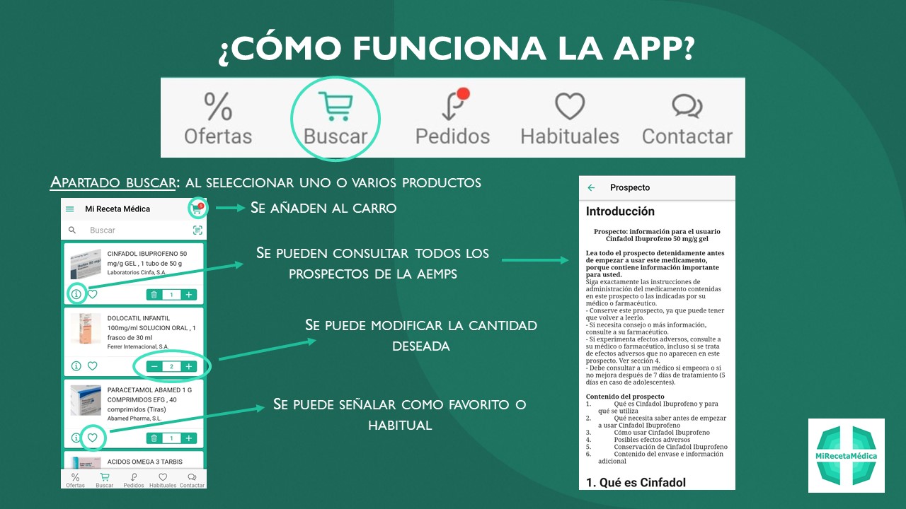 En esencia, "Mi Receta Médica" es la app de solicitud de productos farmacéuticos. El usuario puede solicitar sus medicamentos cómodamente, desde cualquier lugar, a su farmacia de referencia.