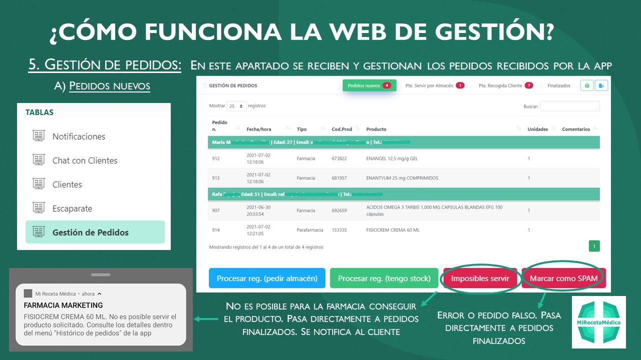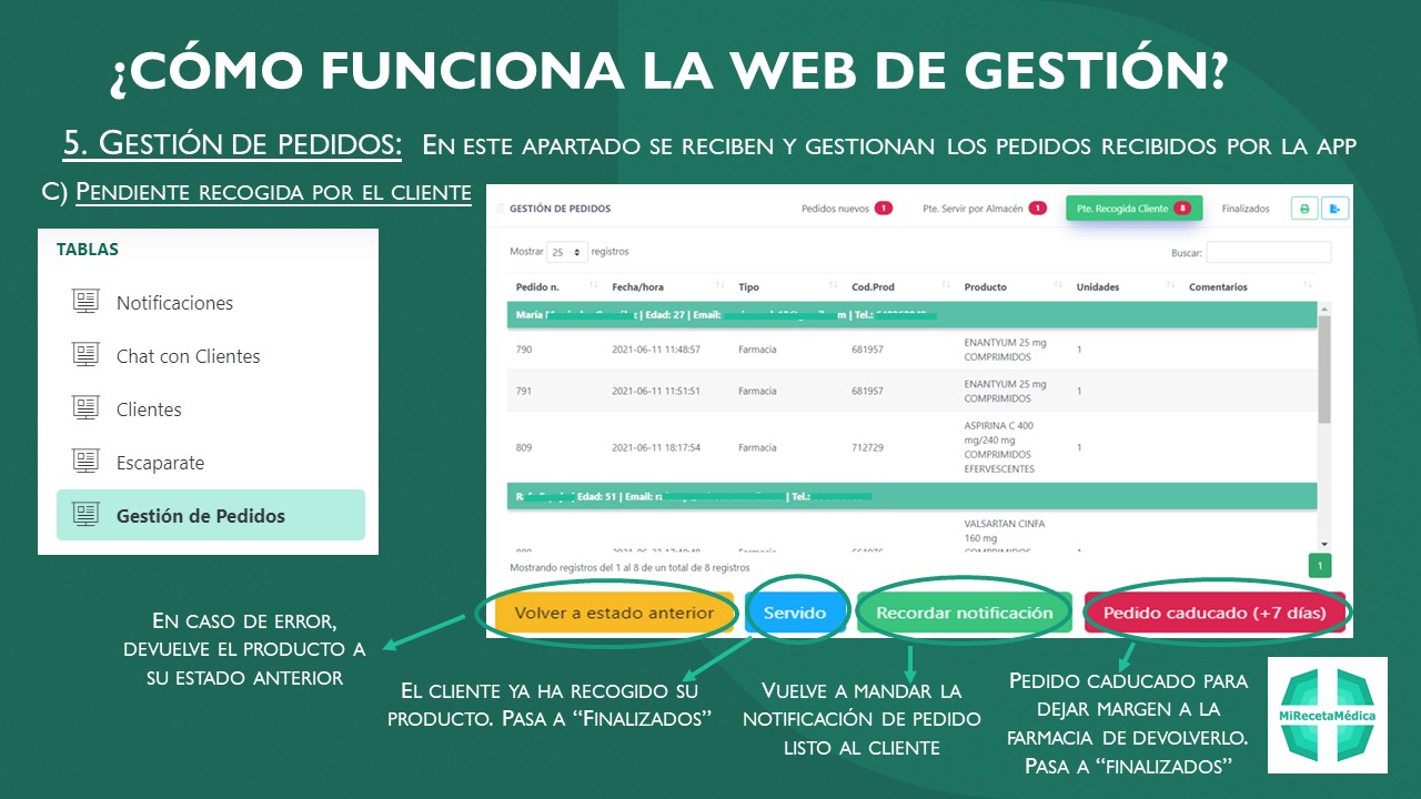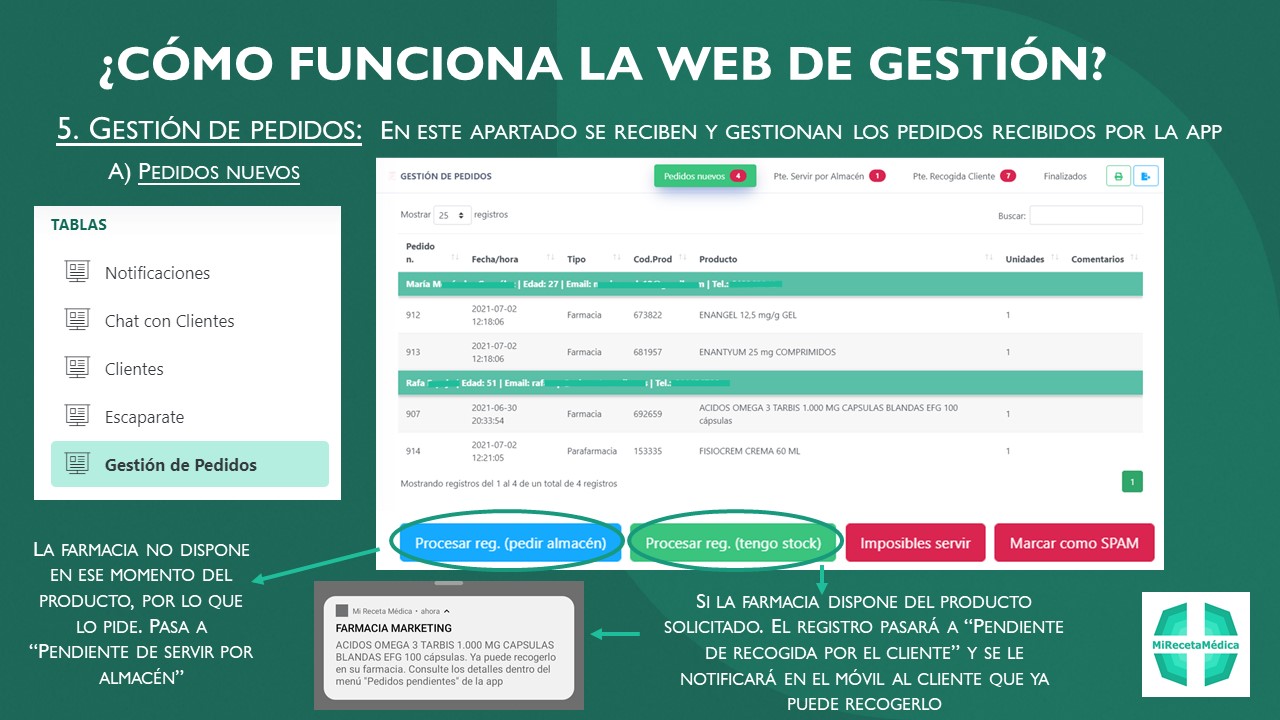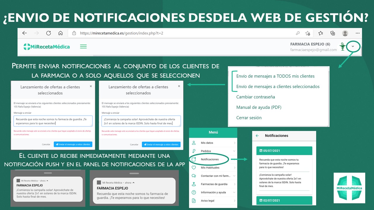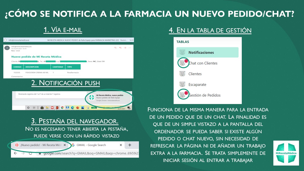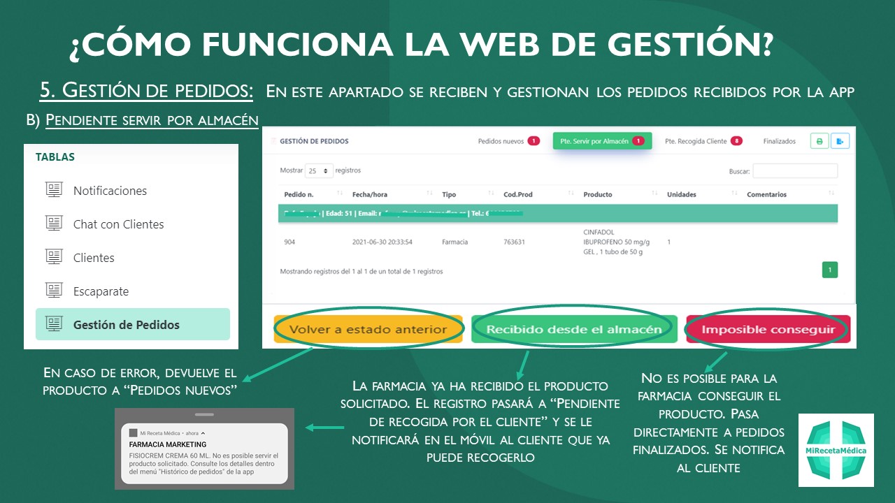 Y una vez su farmacia los tiene preparados, es avisado inmediantamente desde la misma app a través de notificaciones push.
